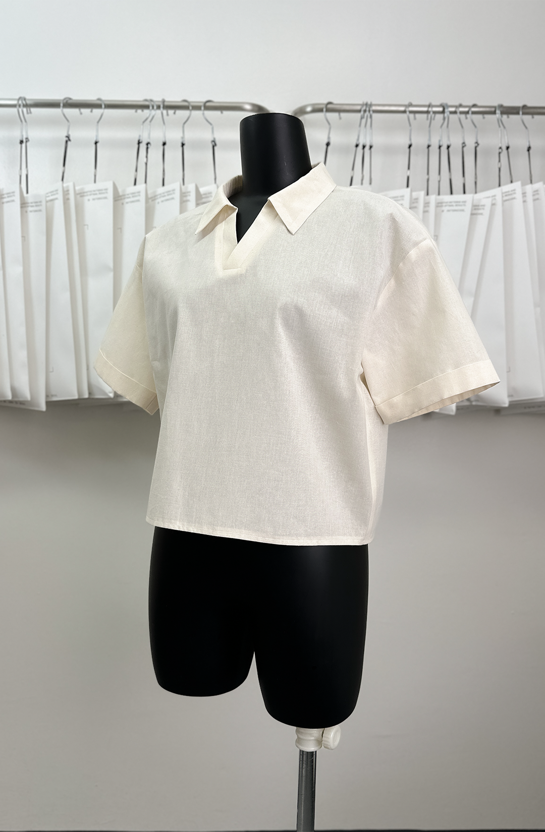 · It's an overfit open collar T-shirt.The slightly open collar gives you a