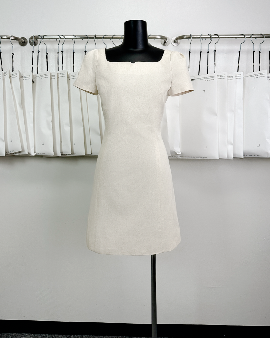 · A mini dress with rounded square neckline