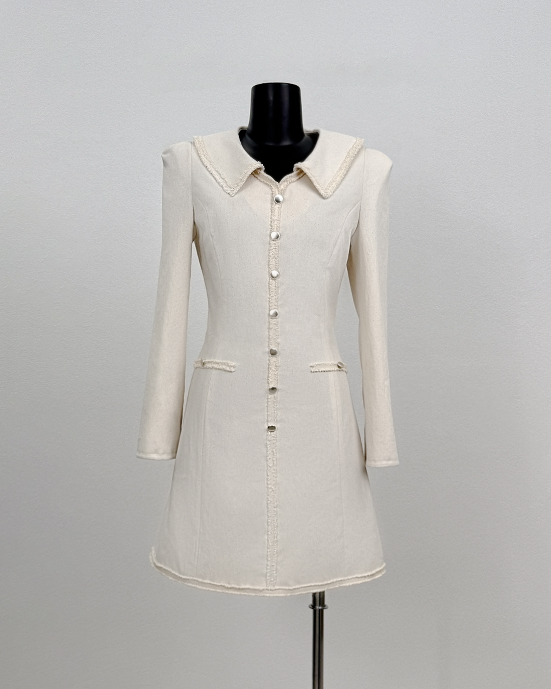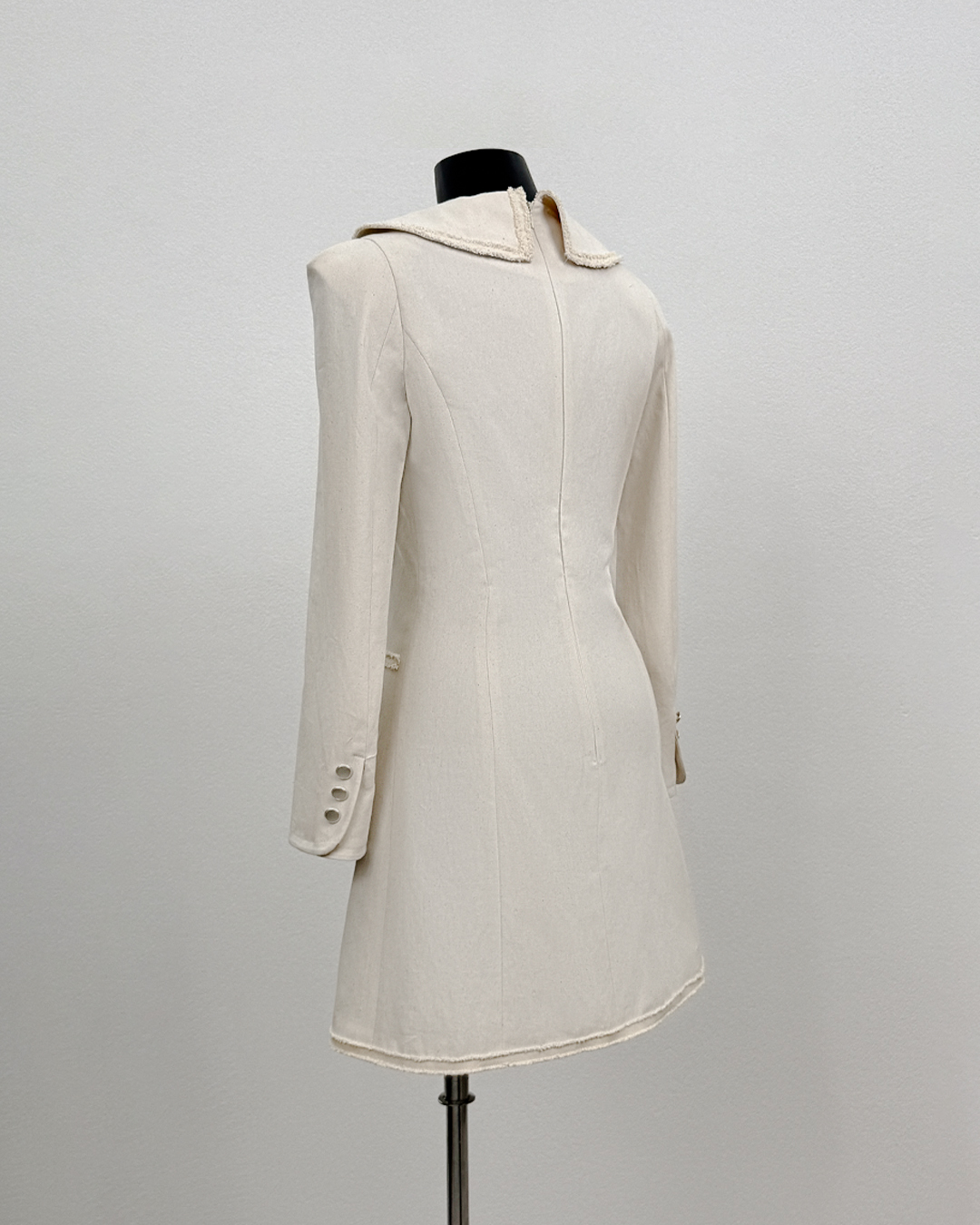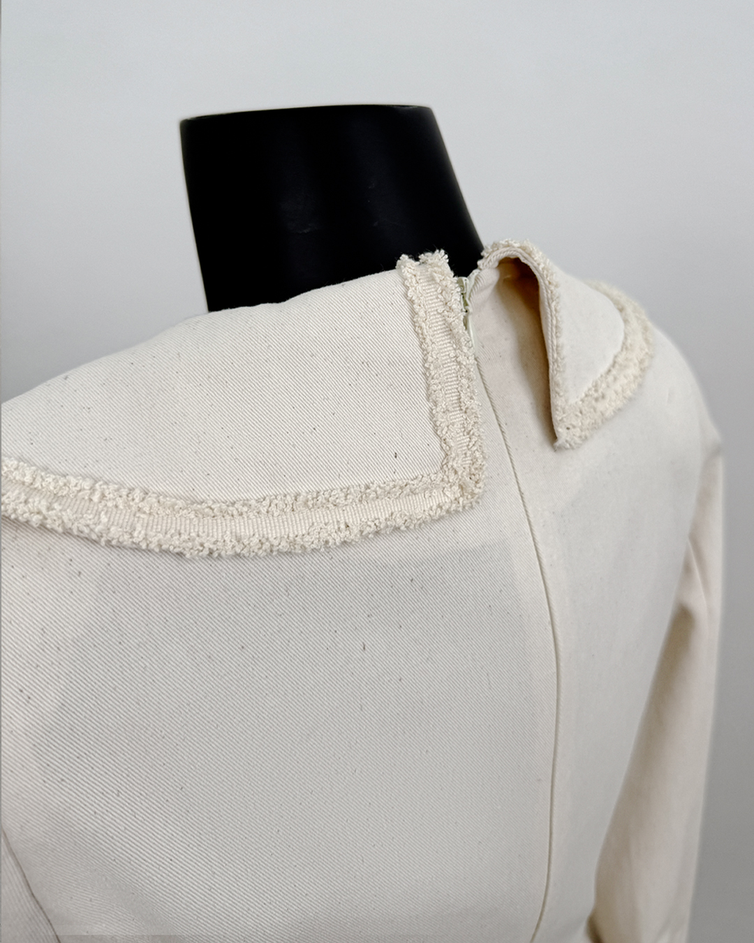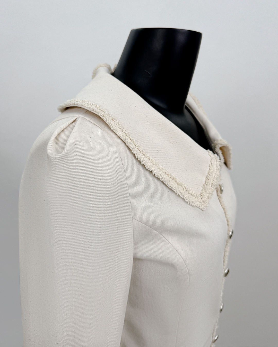 · Curved designs on collar and cuff