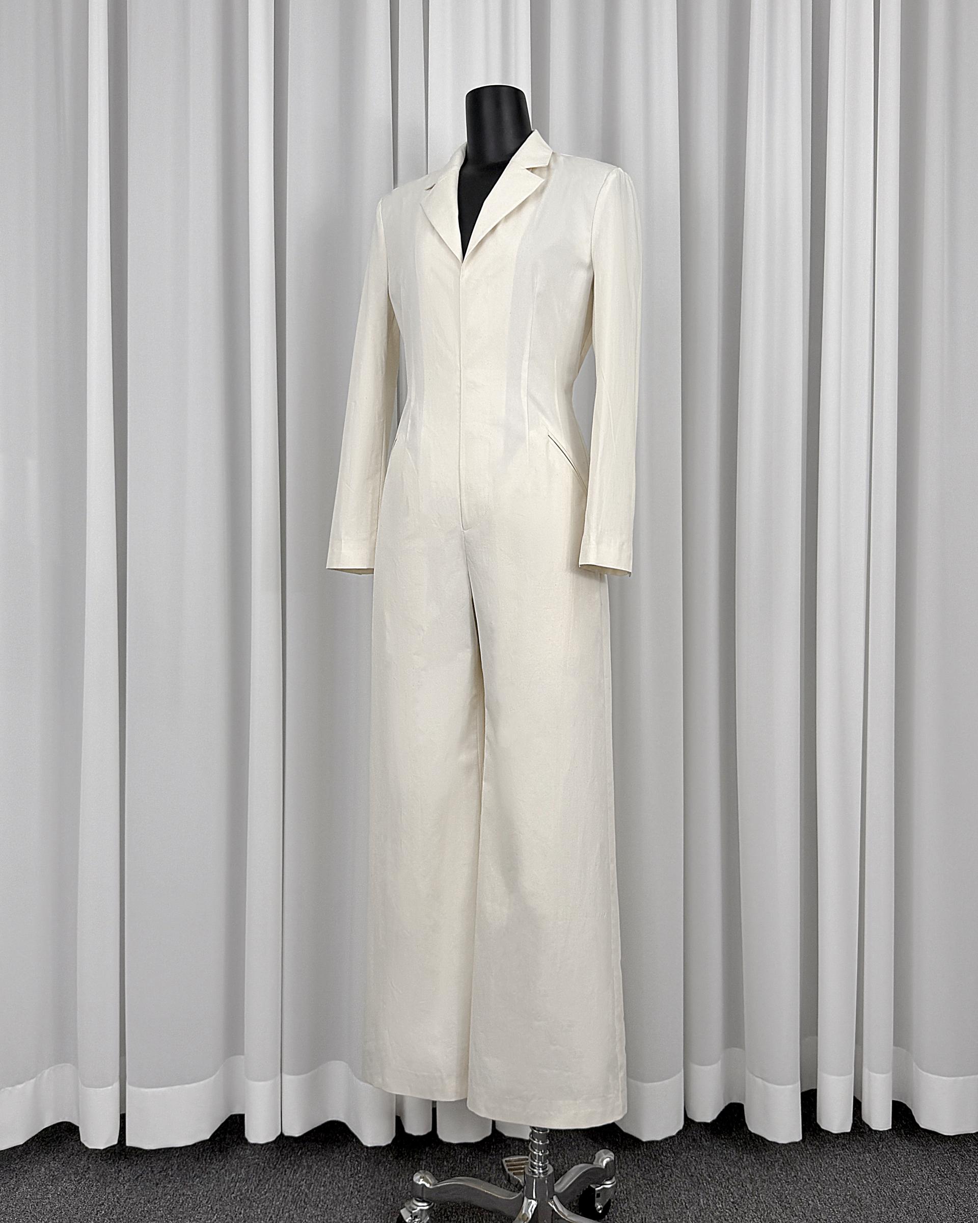 · Precisely constructed jumpsuit with no seam dividing the top/bottom