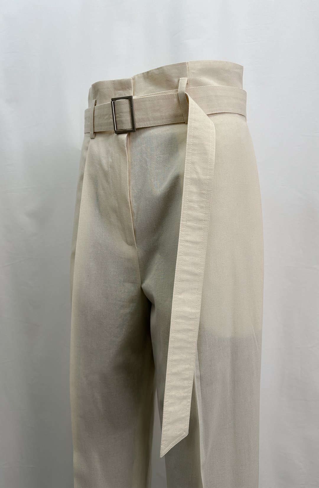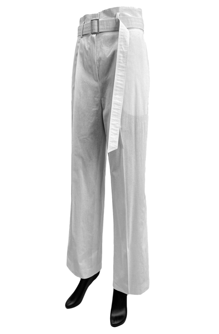 · These are belted two-tuck wide slacks with a curot silhouette.