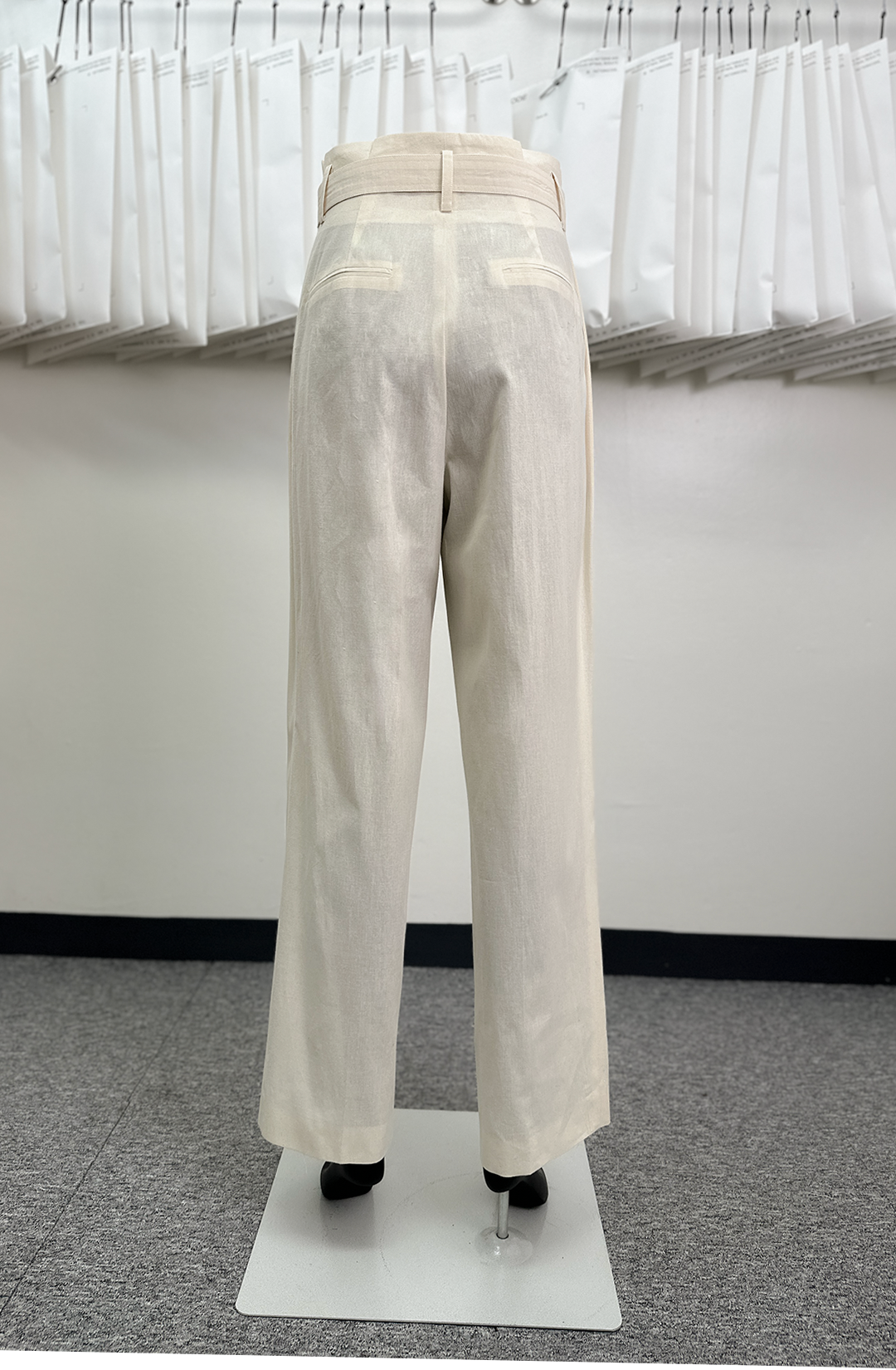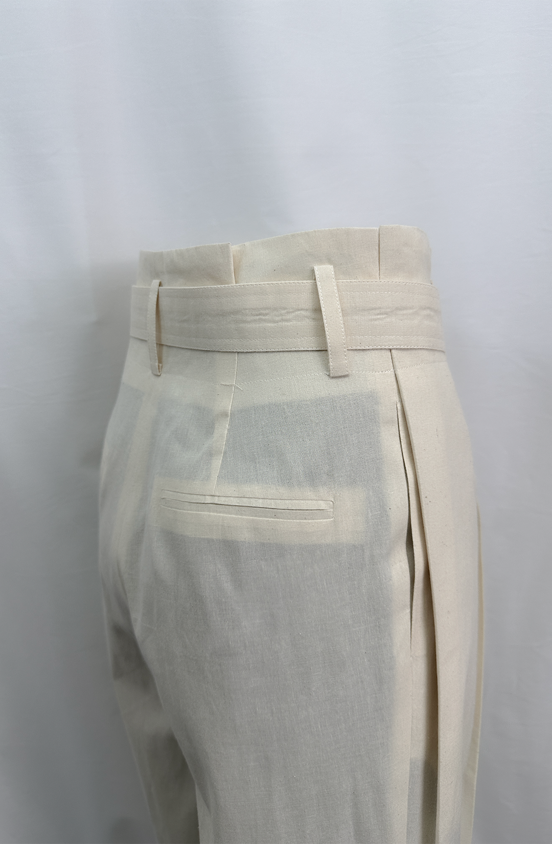 · The pants do not have a separate waistband, but the tuck is extended to the top and folds with the lining.