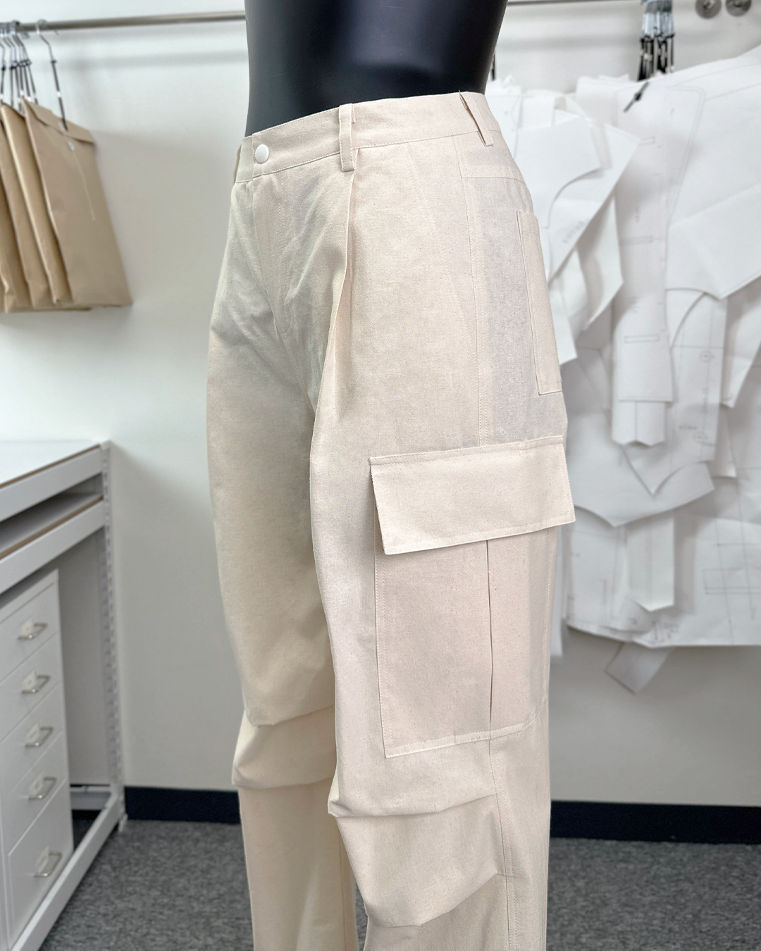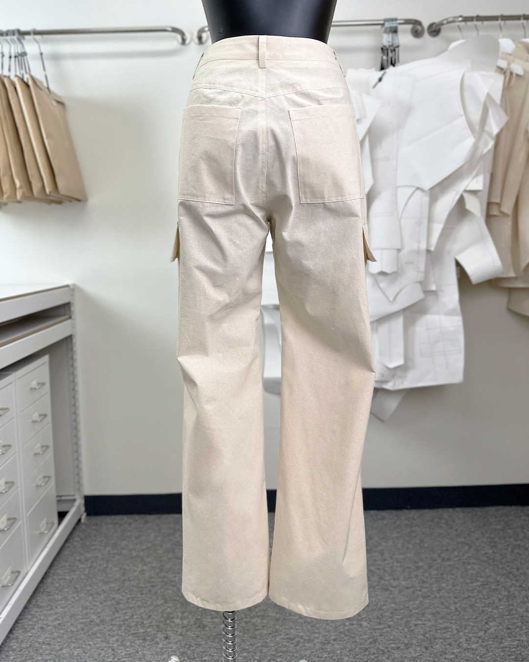 · It's a three-dimensional cargo pants with a deep tuck detail on the waist and knee, and it's a trendy design that reminds you of a parachute.