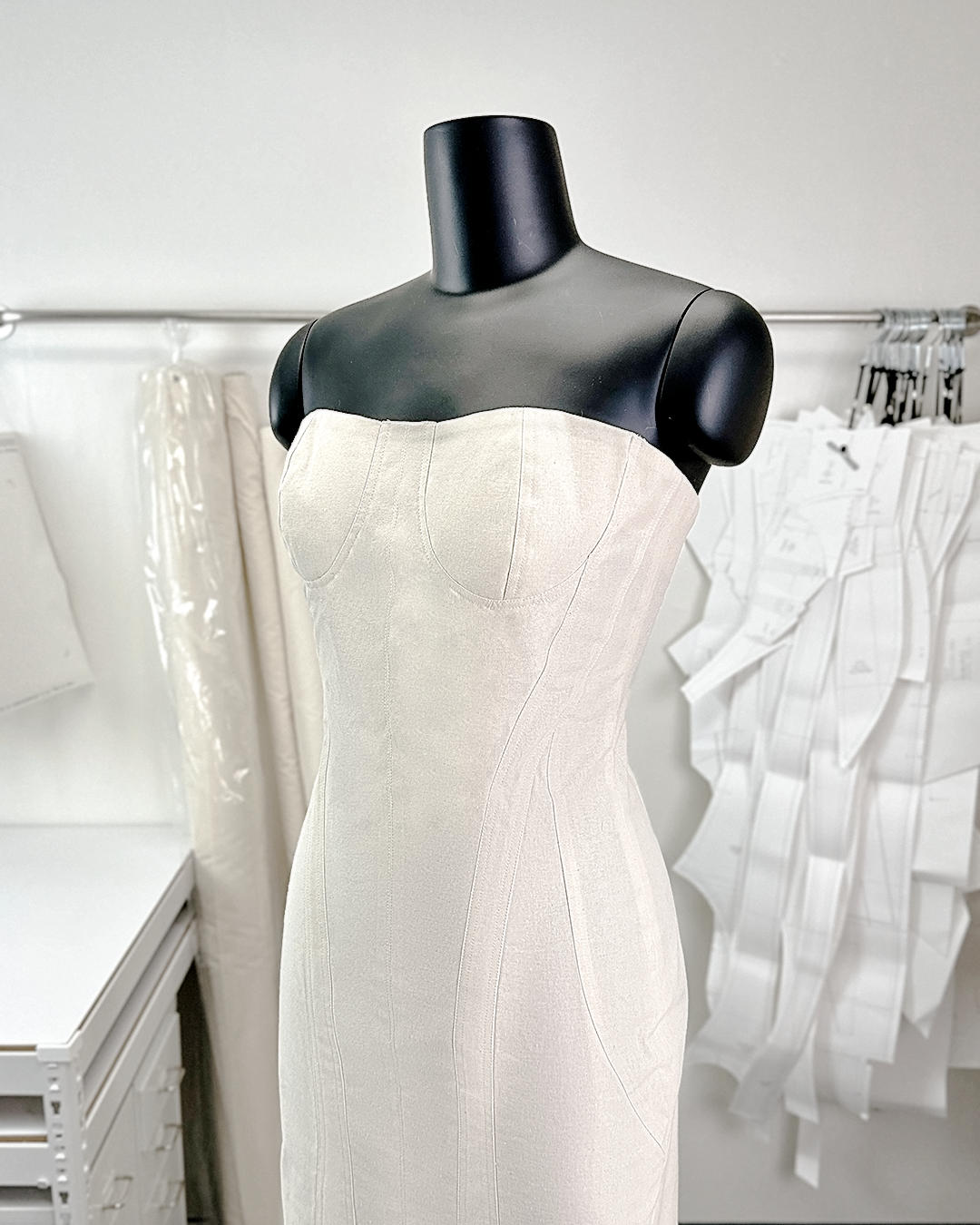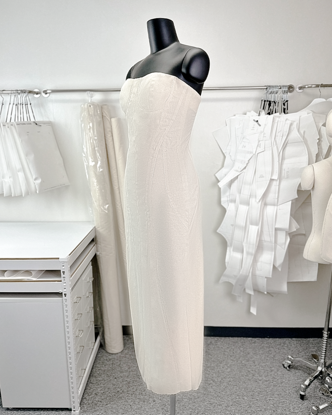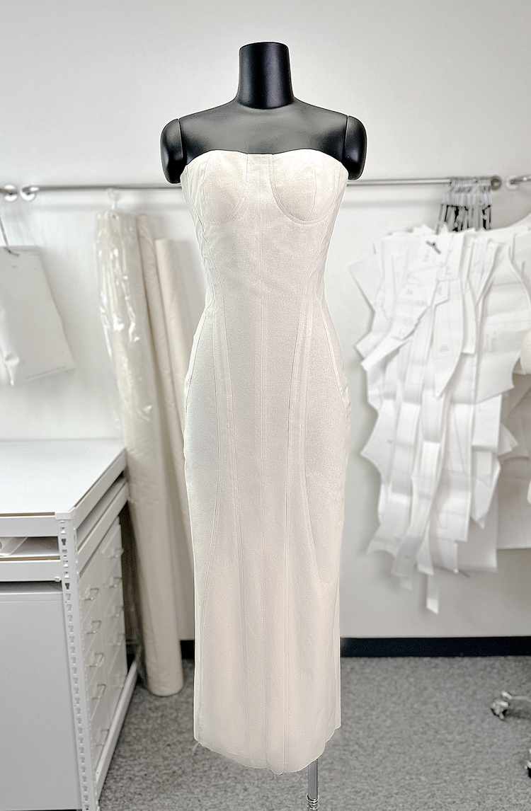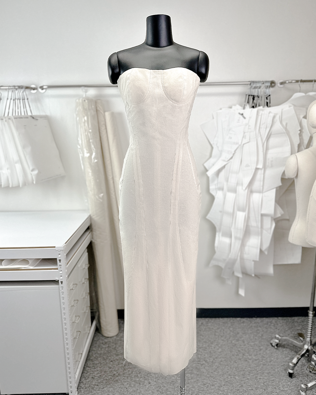 · It'This long dress has stitch points added to the three-dimensional cup and curved cut lines.