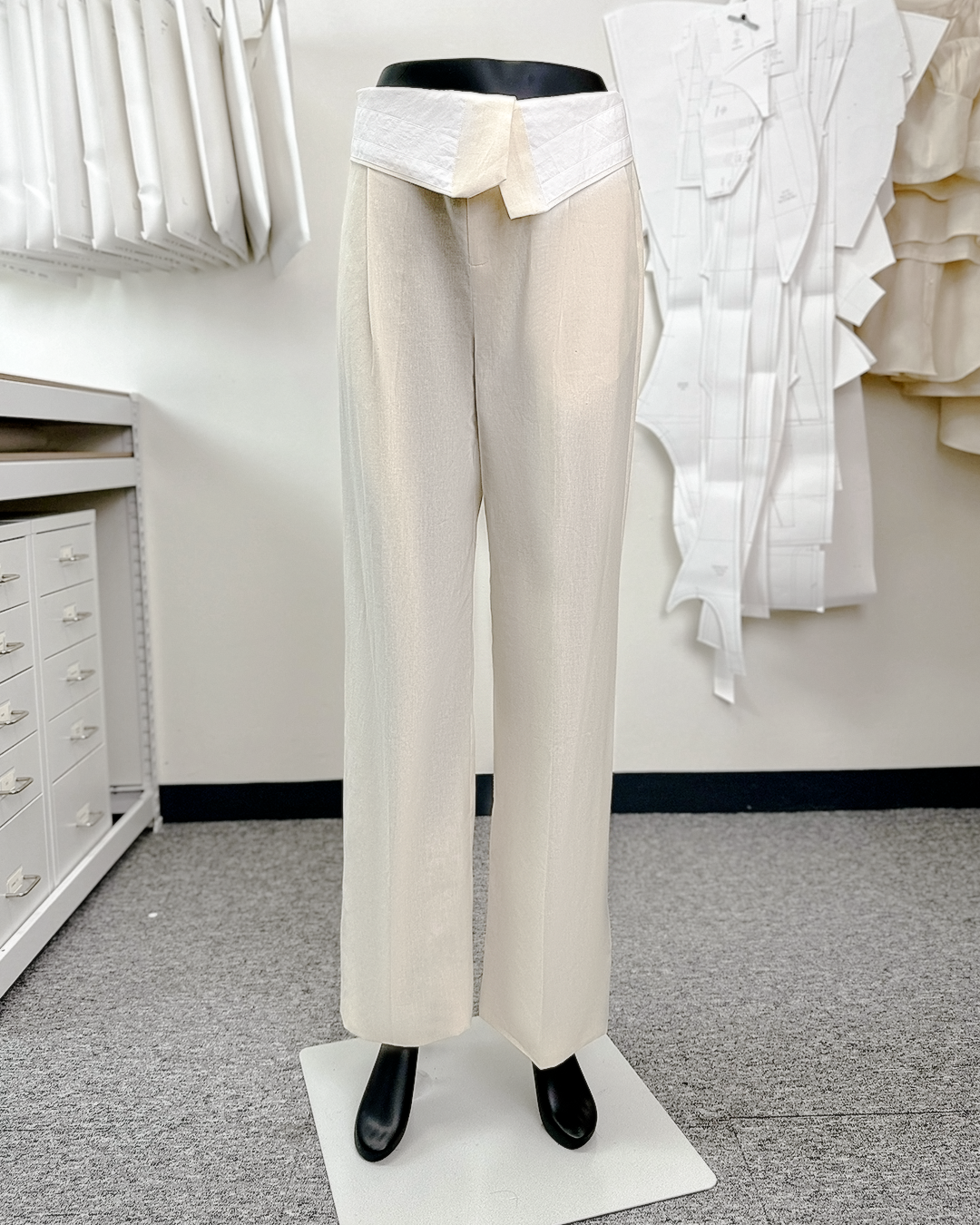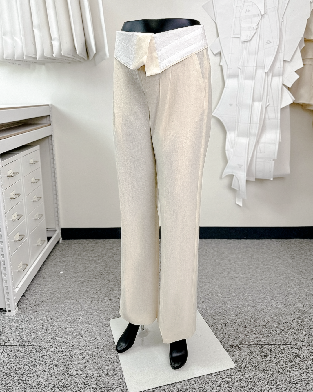 · These are low-rise slacks finished with the inner waist closure method commonly used in men's clothing.
