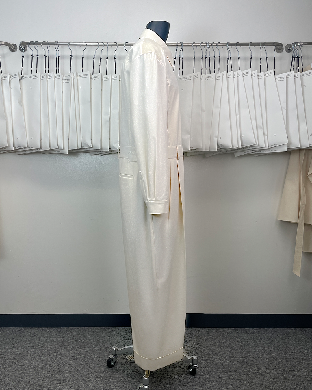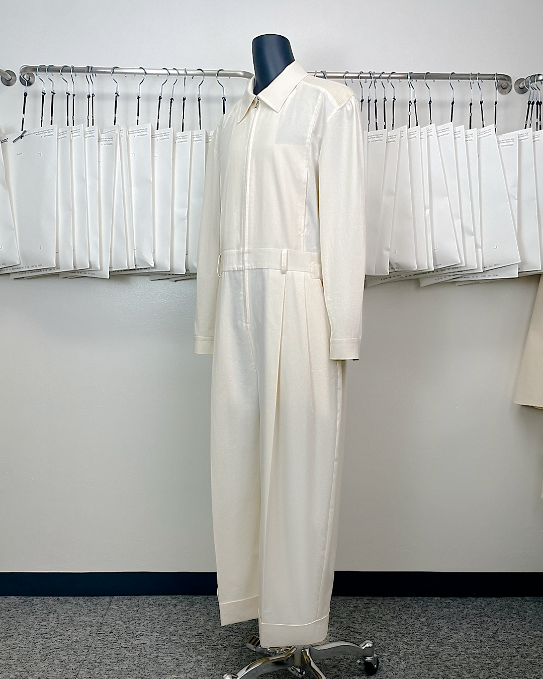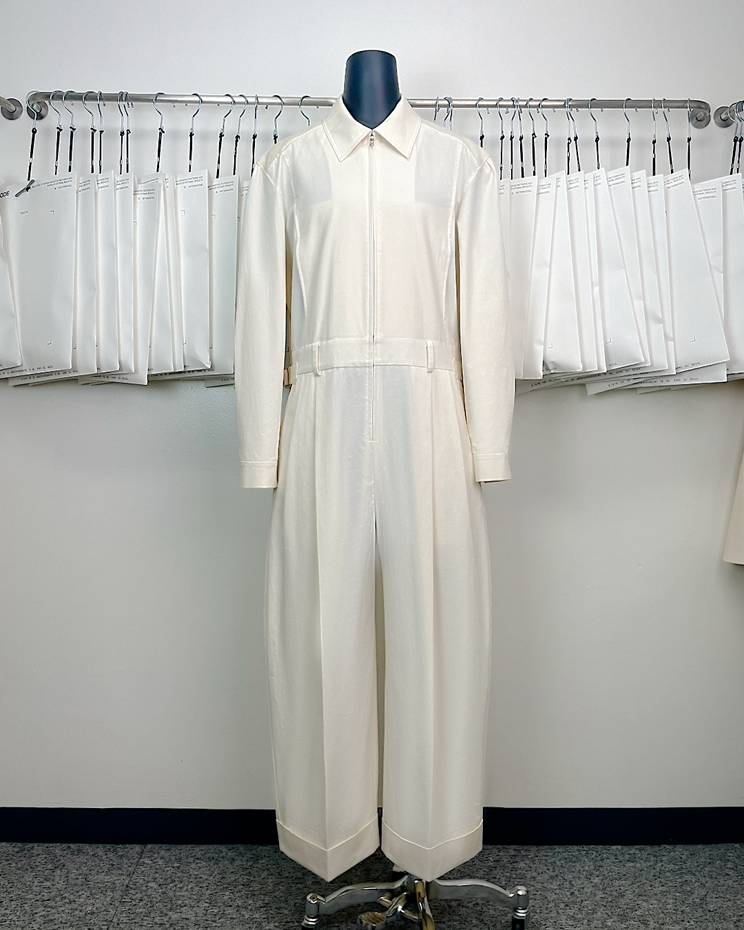 · This is a jumpsuit that combines the details of a shirt and slacks.