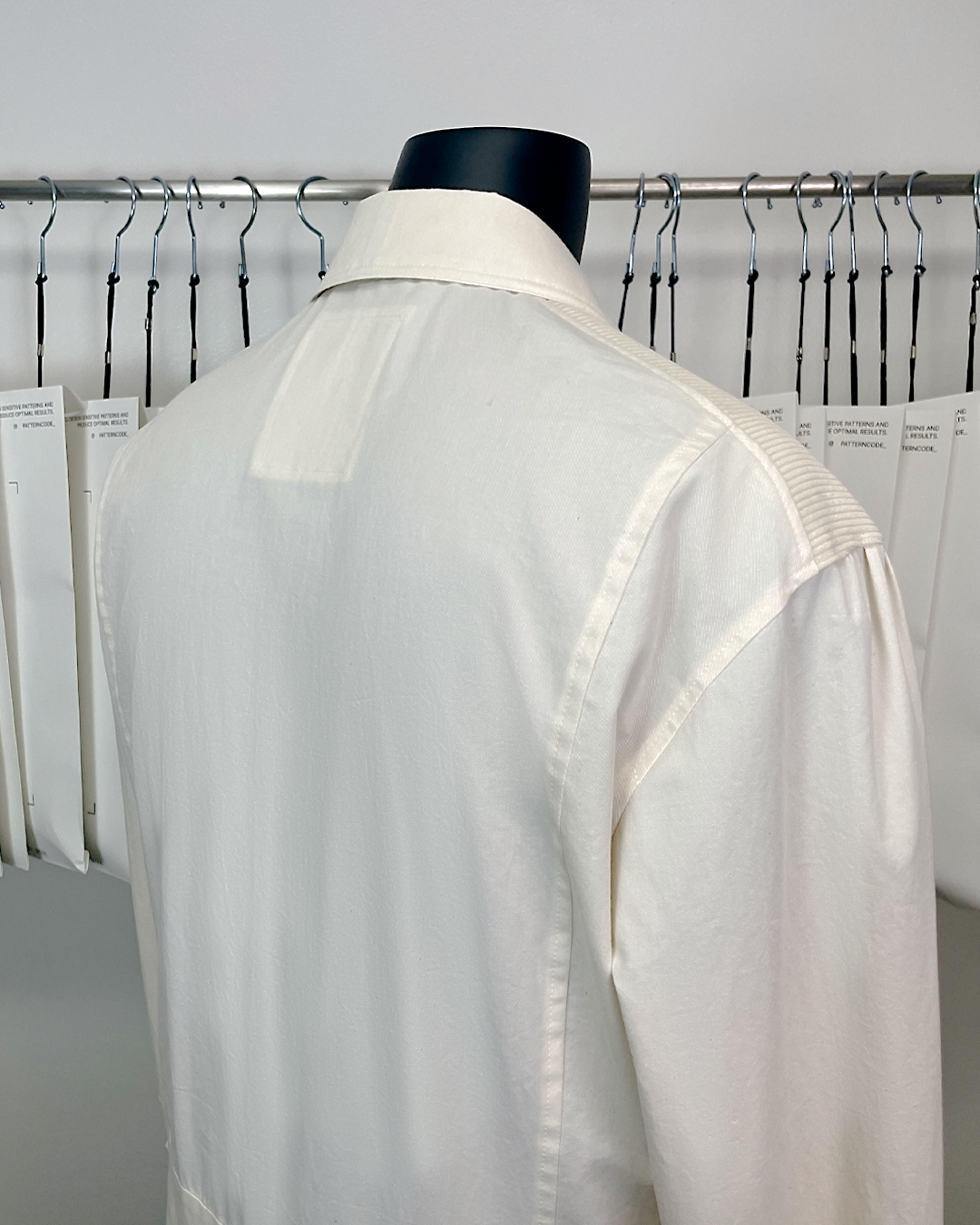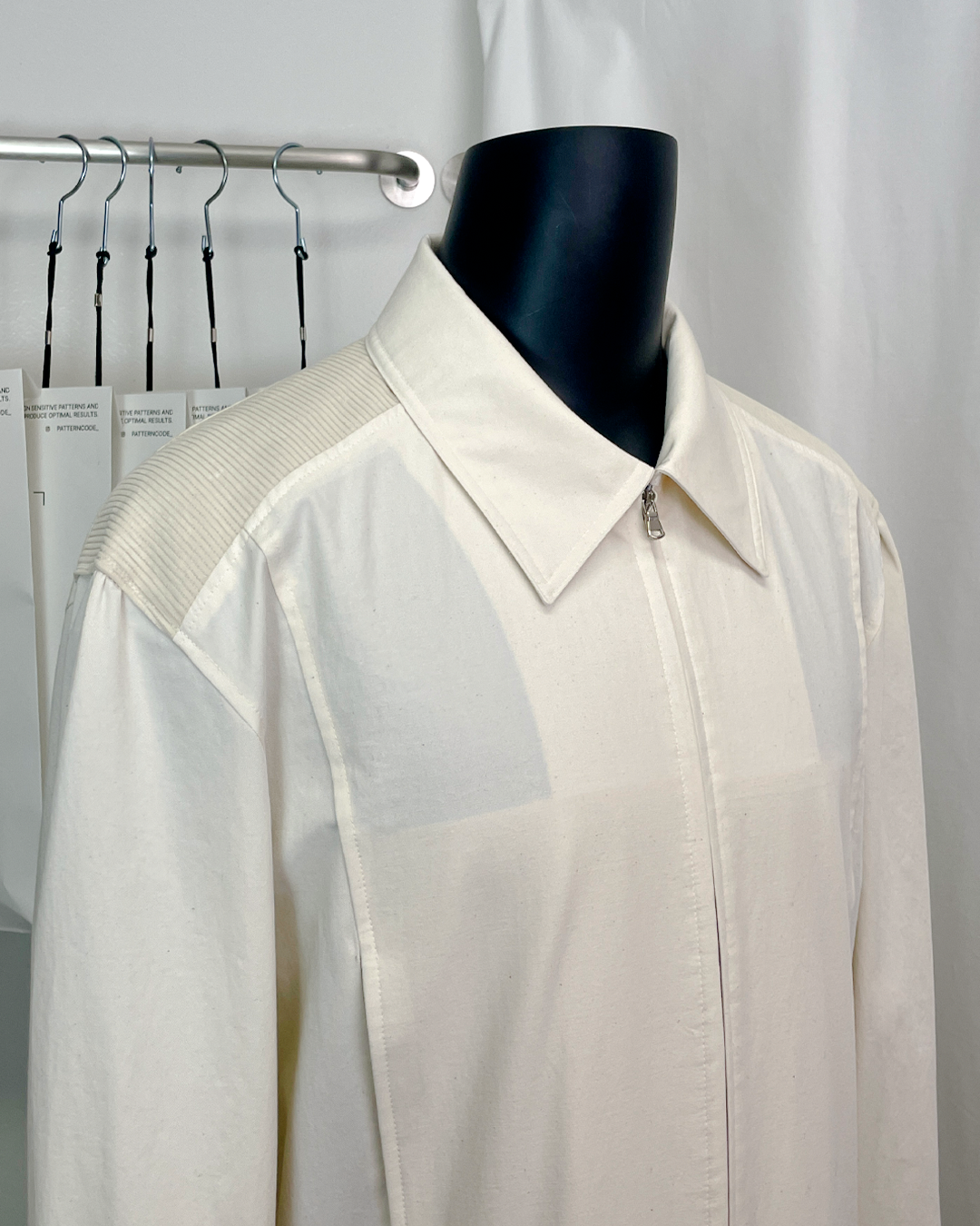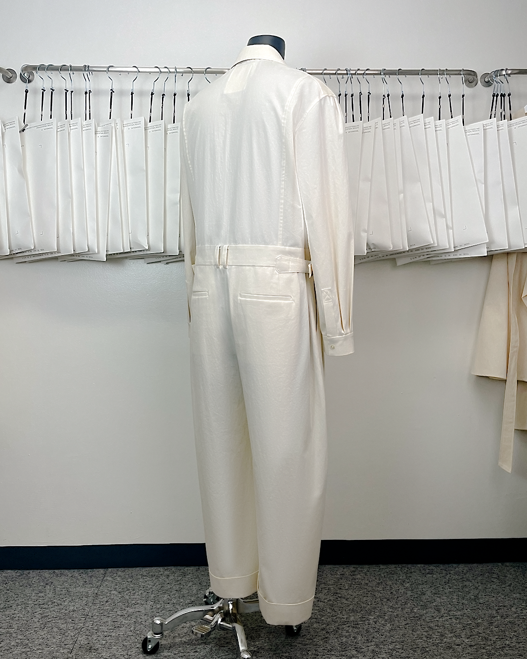 · This is a jumpsuit that combines the details of a shirt and slacks.