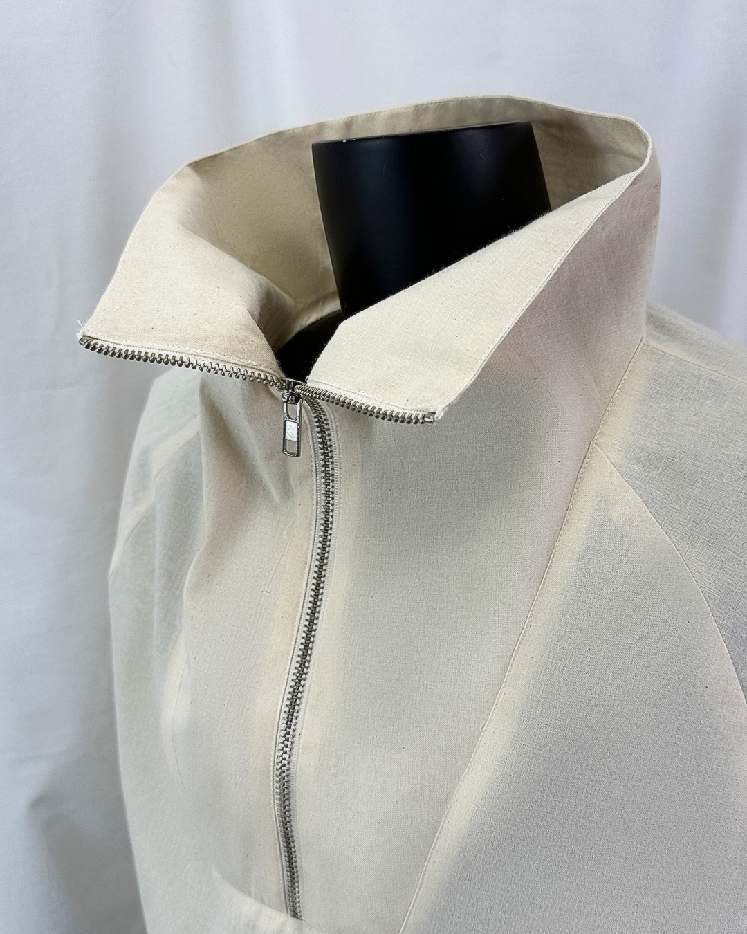 · The sleeves and hem are finished with banding to increase convenience and durability.