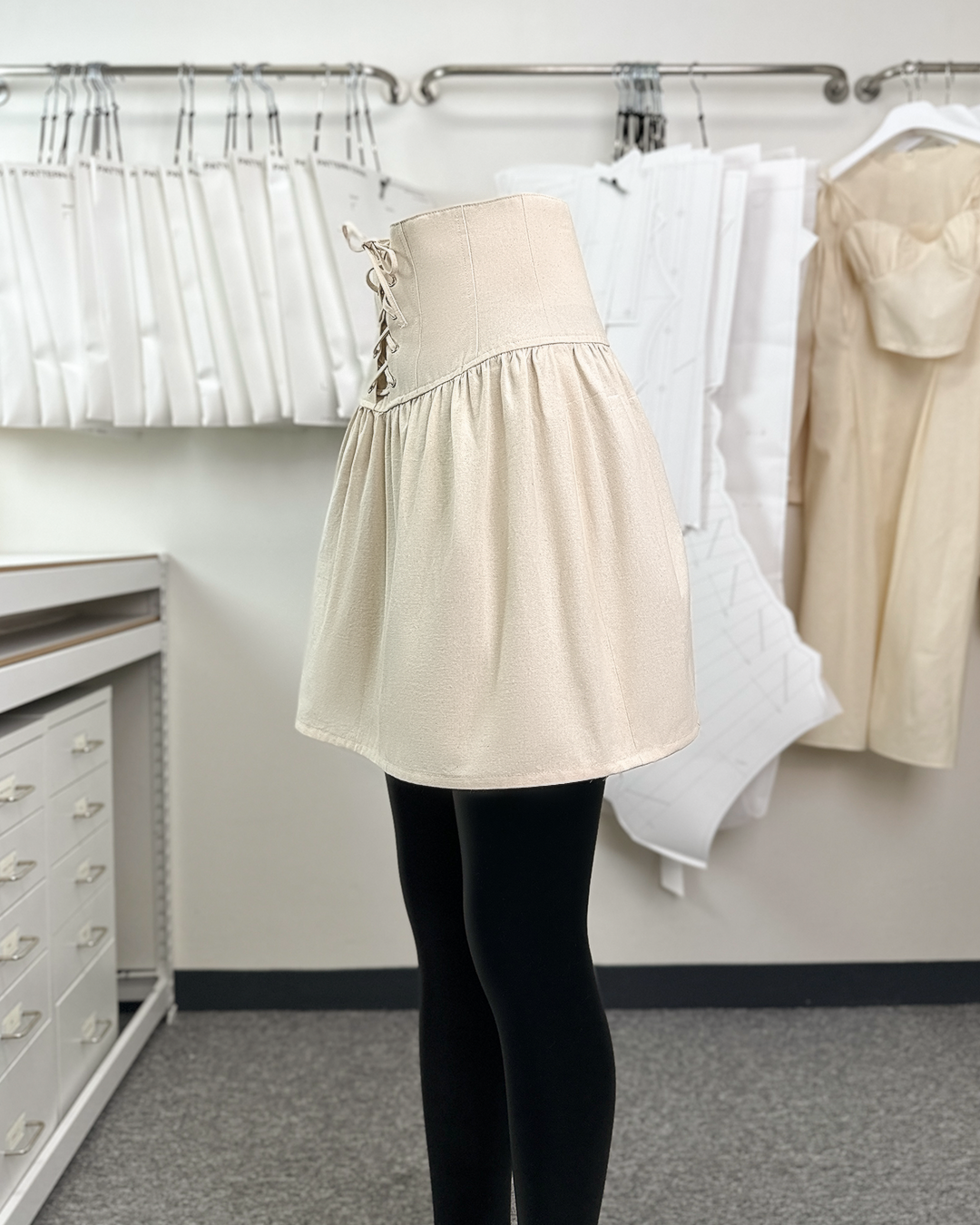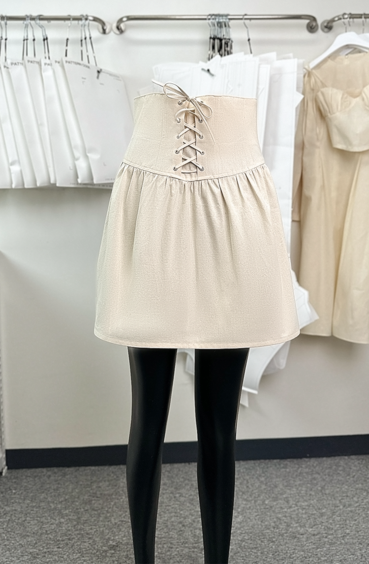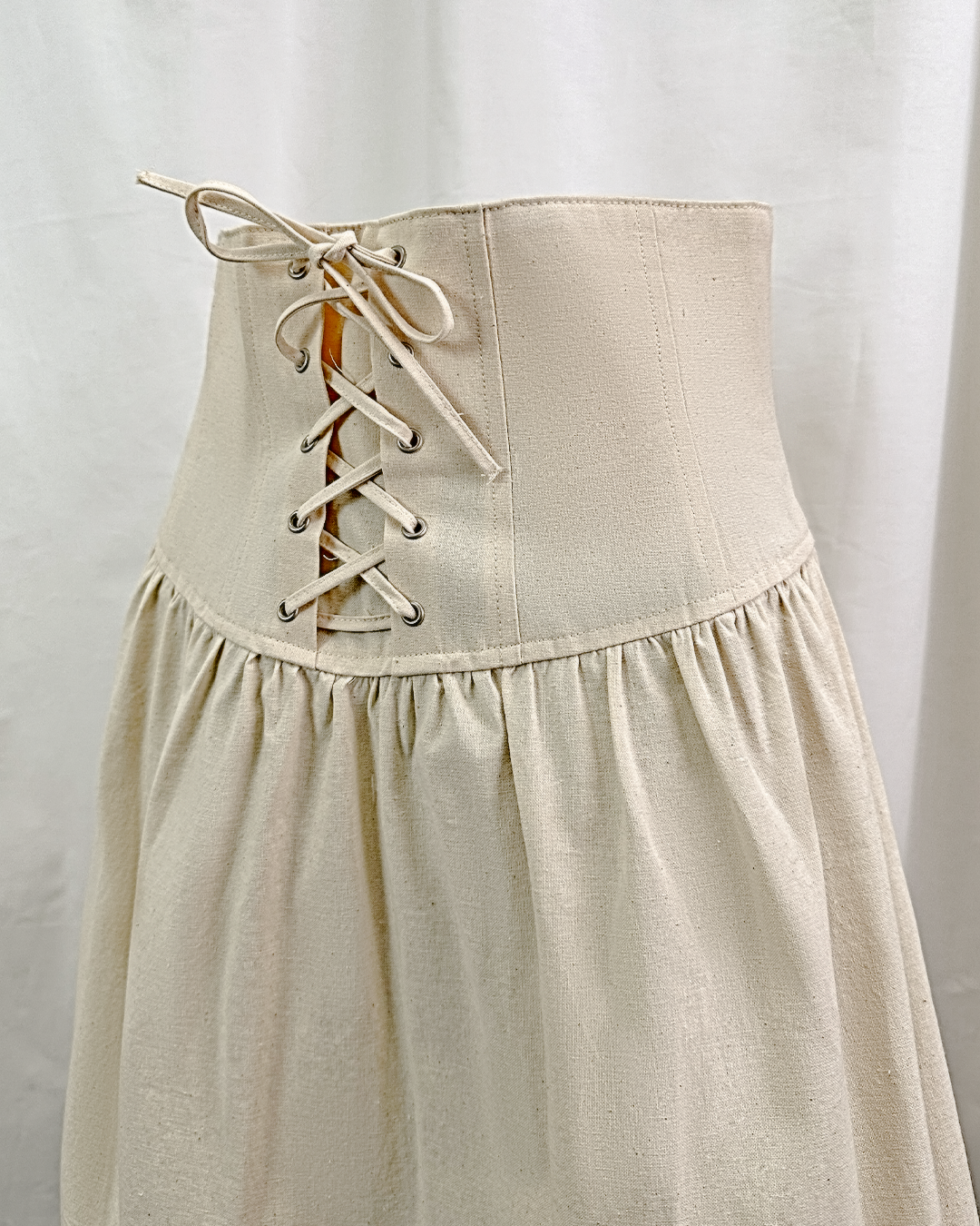 · The corset details are finished with ribbon, and the voluminous skirt with shirring. It emphasizes the feminine mood and makes the waist look slimmer.