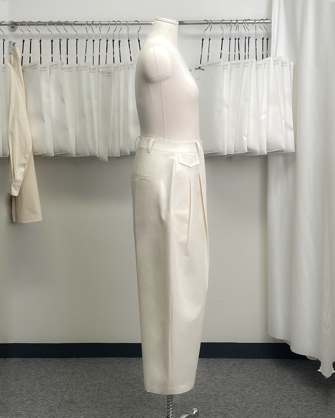 Curved silhouette two-tuck pants