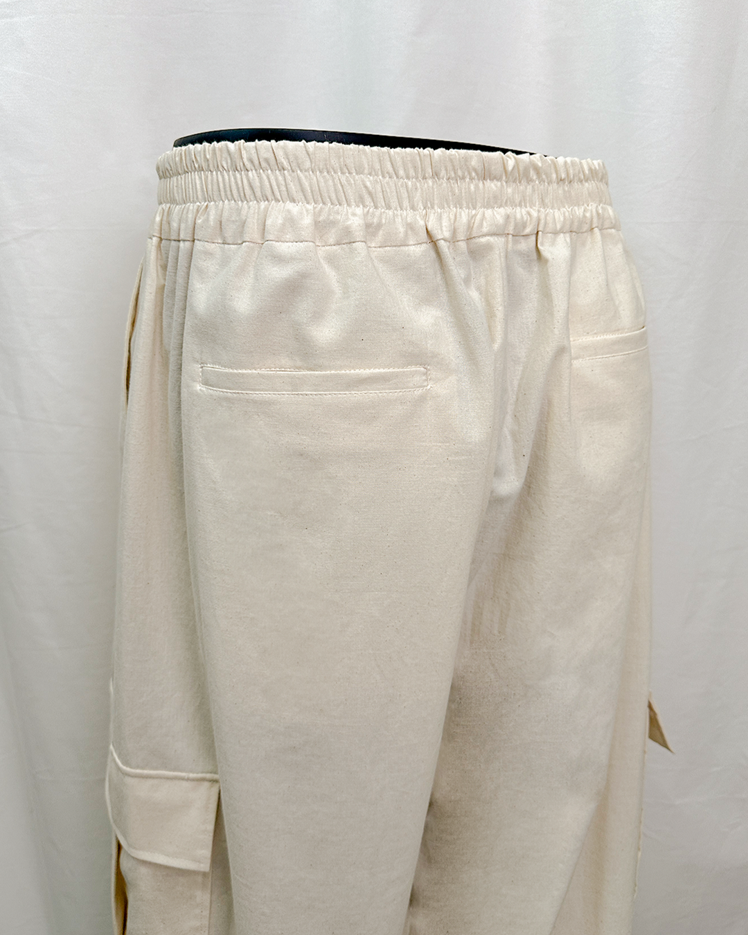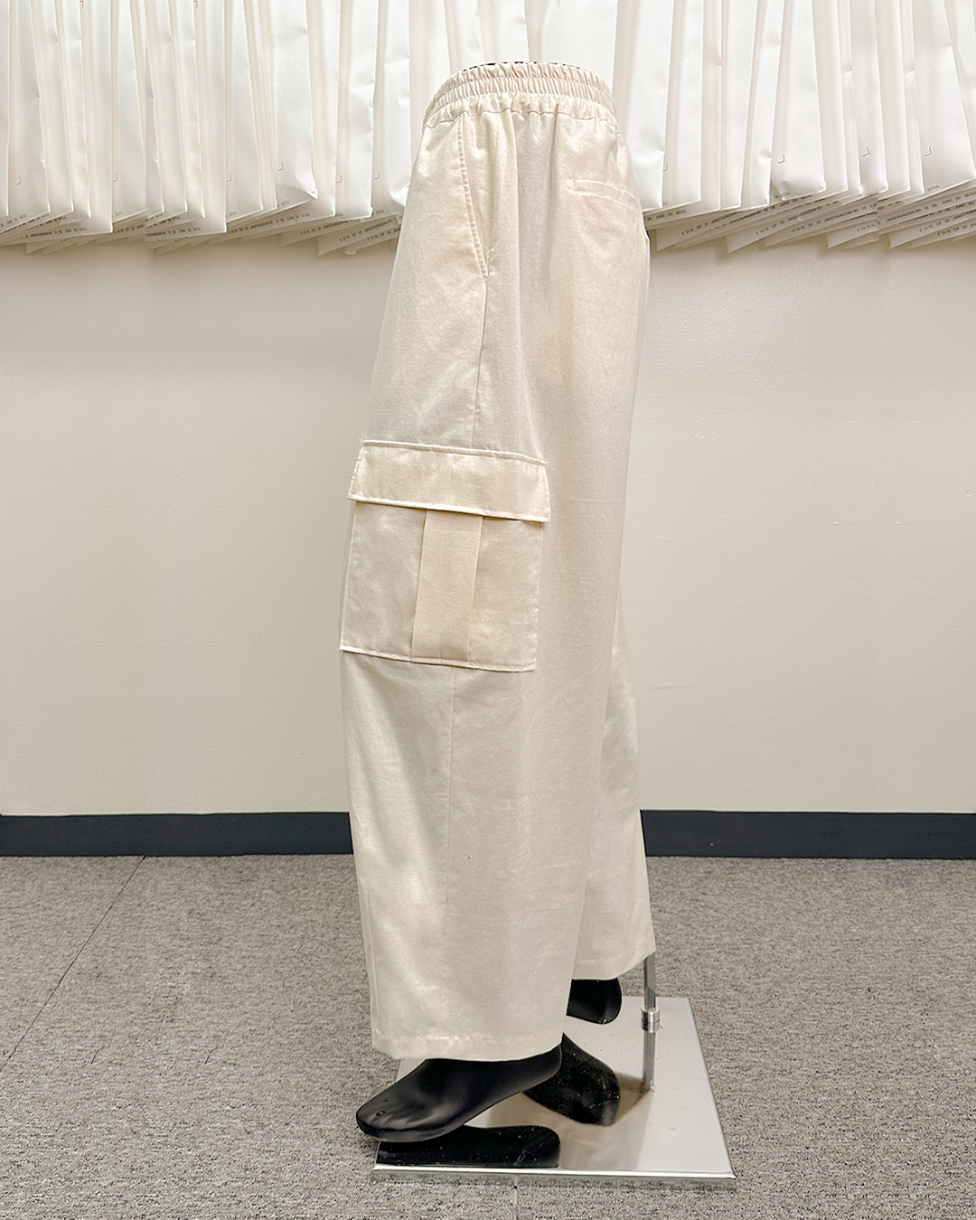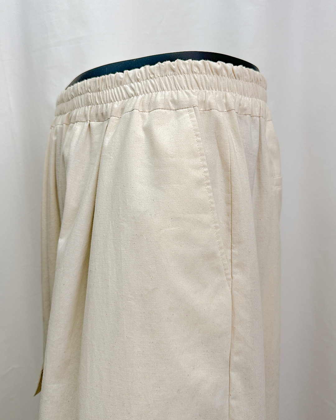 · These are three-dimensional oversized banding pants with a relaxed silhouette with deep tuck details and dart-finished hem